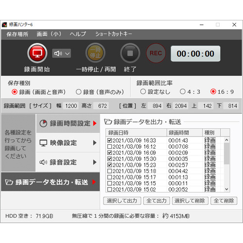 通常、録画を終了するとすぐに動画の出力が始まりしばらくは録画できないのですが、本ソフトは録画データを録りだめておくことができます。