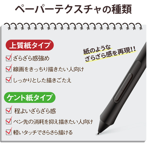 ●ワコムペンタブレット Intuos 2018年モデル Medium ワイヤレスの操作面を傷や汚れから守る、指紋防止、反射防止タイプの紙心地フィルムです。