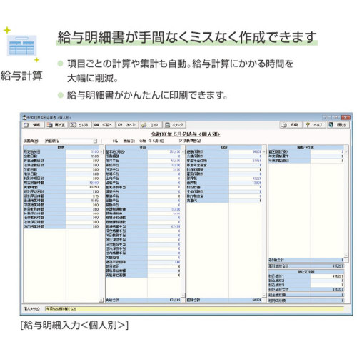・わかりやすい画面構成と、かんたん操作で、支給日までに面倒な計算を短時間で完了