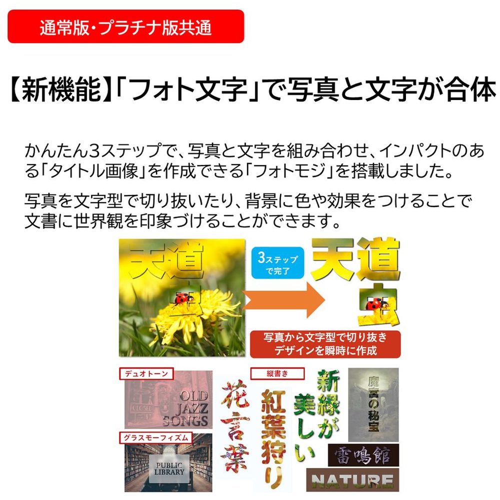 一太郎2024の上位版「一太郎2024 プラチナ」は、一太郎2024の全ての機能に加え、高品位フォント「ヒラギノフォント 厳選15書体」、
