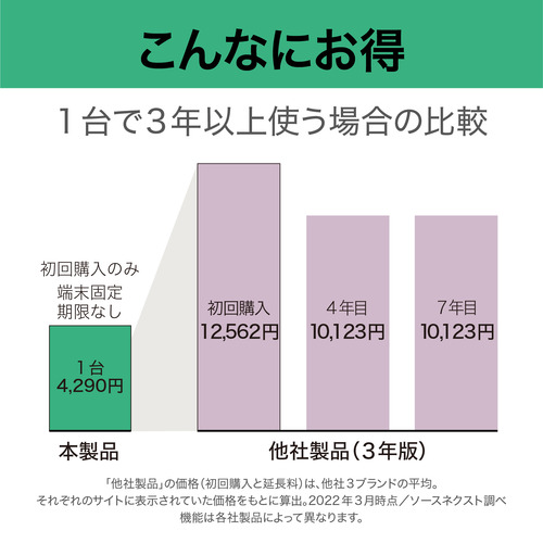 ●低価格、更新料0円、出費は1台1回だけ