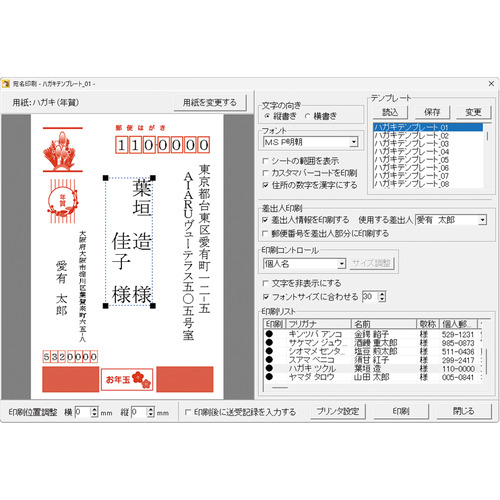 差出人の複数登録にも対応しており、作成した住所録との組み合わせにて用途に合わせた宛名印刷が可能です。