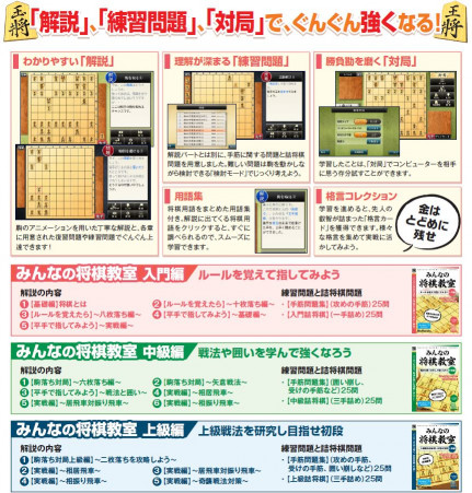 駒の動かし方から対局まで、楽しく覚えて将棋を指せるようになる。