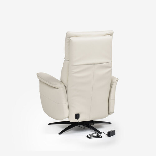 背と脚をそれぞれ独立して可動できる電動リクライニングチェアです。脚だけを上げてオットマン代わりにしたりと、お好みの調整が可能。インナーコイル内蔵の座面は適度なクッション性で、長時間の使用でも疲れにくい座り心地です。