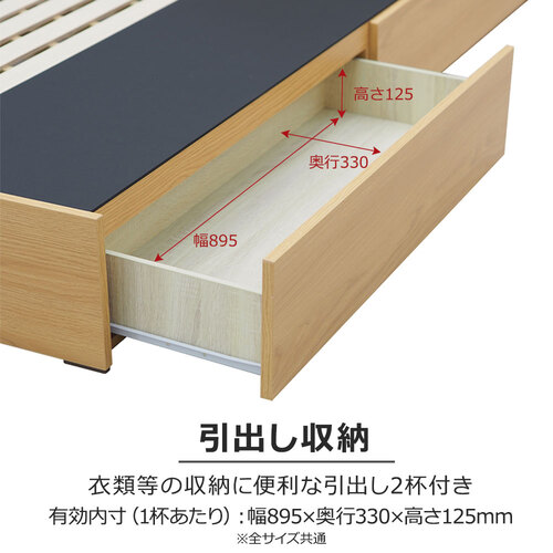 材質:ヘッドボード・サイドフレーム:プリント紙化粧繊維板 床板:すのこ ※引出し部は布張り床板(平板)仕様