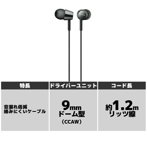 ソニー MDR-EX155-B ダイナミック密閉型カナルイヤホン ブラック