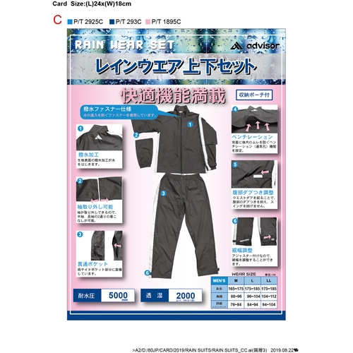 ●アドバイザー【快適機能満載】レインウェアー上下セット