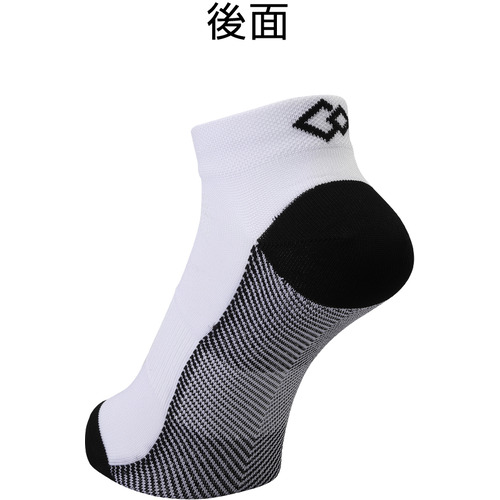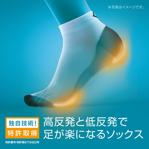 かかと部分に低反発素材、つま先(母指球小指球)部分に高反発素材を使用したスポーツ用ソックスです。