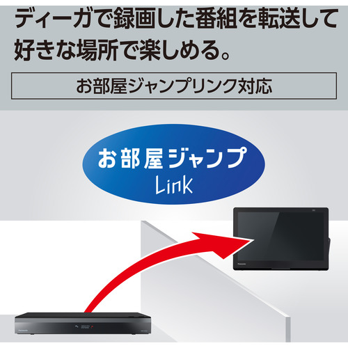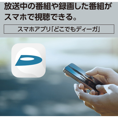 ・YouTubeなどの動画配信サービスに対応 ・500GBハードディスク内蔵。2番組同時録画(※2番組同時録画中のチャンネル/放送切換は、録画中の番組間でのみ行えます。※)にも対応で好きな番組が重なっても録画できる ・無料アプリ「どこでもディーガ」を使えばプライベート・ビエラのチューナー部やディーガから転送される放送中の番組や録画番組を、スマホやタブレットでストリーミング再生できる