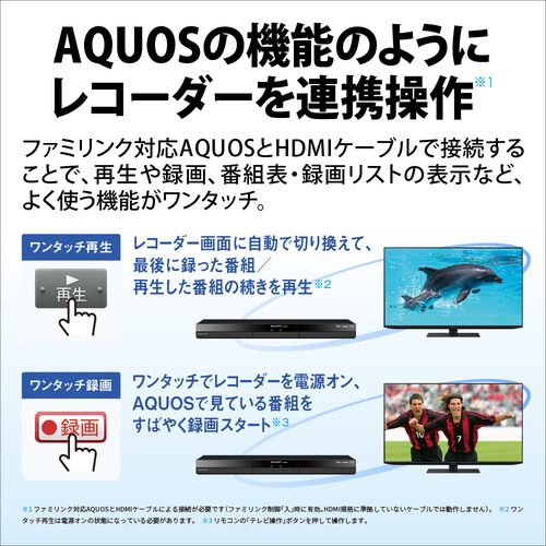 AQUOSと接続すれば、録画番組のジャンルに合わせて、画質・音質を最適調整