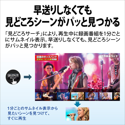 見たいシーンを探し出しやすい1分間隔のサムネイル表示