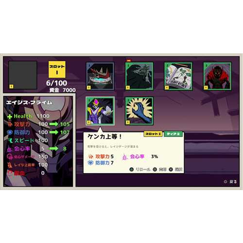 出撃前にキャラクターに「DNAオーグメント」を装備することでステータスの強化が可能!オーグメントのランクが高いほど効果も増加する。