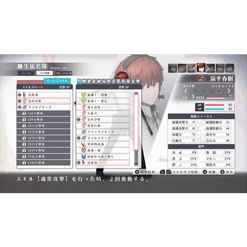 プレイヤーは教師として毎週授業のスケジュールを立て、7人の生徒を育成していきます。成長に応じて、生徒たちは戦闘で使うスキルを習得します。