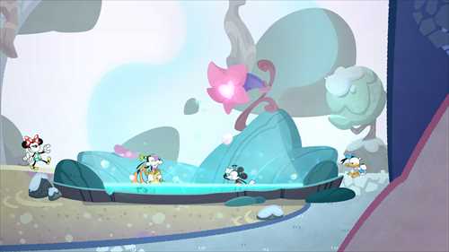 手描き風のアニメーションにオーケストラ演奏による楽曲、原作と同じ声優のキャラクターボイスによって彩られたミッキー&フレンズの冒険を体験しよう。