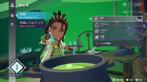 ダンジョンで入手したアイテムは、拠点に持ち帰って武器や作物を生産する材料にできます。