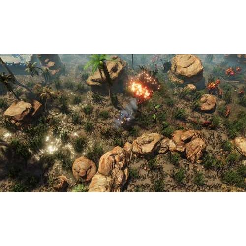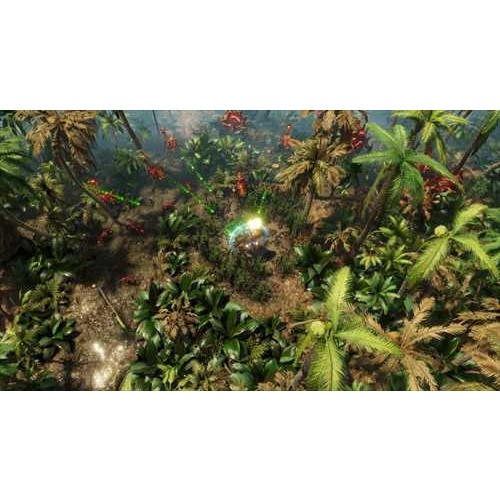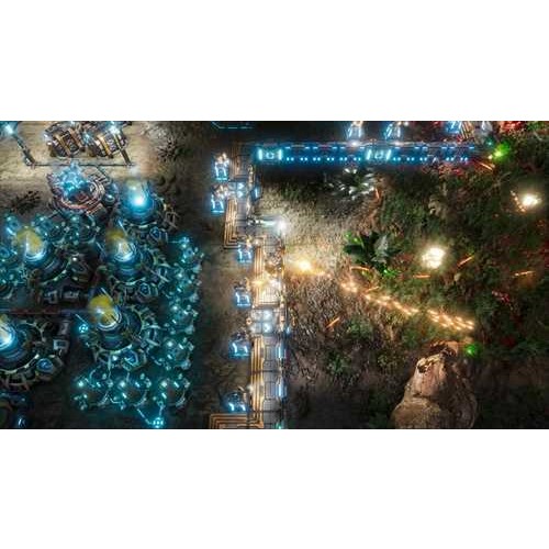『The Riftbreaker(リフトブレイカー)』は自動砲台や発電機、研究所などを建設し自分だけの基地を作り上げ迫りくる何千もの敵を撃退する<基地建設>と様々な武器を切り替えて敵を倒しながら惑星を探索する<サバイバルアクション>が融合したリアルタイムストラテジーです。プレイヤーはパワードスーツに身を包んだ研究者となり、探索拠点となる基地を築きつつ未開の惑星ガラテア37を探索し、植民地化に向けた研究を進めます。