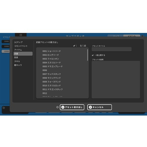 「アセットシェアリング」機能により、『RPG MAKER WITH』では、ネットワークを介して、完成したゲームを公開するだけでなく、制作途中のゲームに含まれているマップやイベントを、パーツ単位で公開できるようになりました。