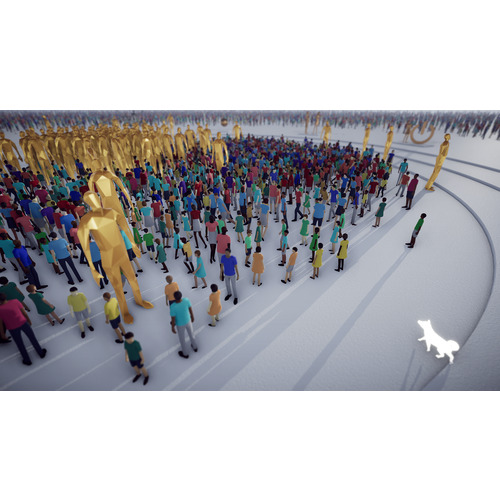 柴犬であるあなたは、行進する人の群衆を指揮し、JUMP・TURN・PUSH・FLOAT・SHOOTなどの指示によって彼らを救済する役割を担っている。ストーリーモードでは、障害物・敵・パズル・アンロック可能なスキル・手強いボス戦などの要素が満載の90以上のステージで群衆を導くことになる。また、簡単な操作で使いやすいSTAGE CREATORで、あなただけのユニークなステージを創ってシェア! さらに、USER STAGESで世界中のプレイヤーが生み出す無数のオリジナリティあふれるステージにチャレンジしよう!