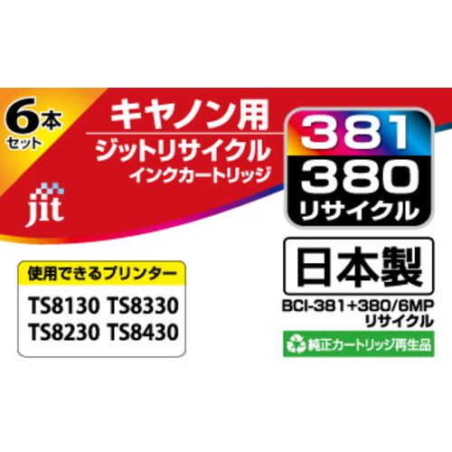 入り数:ブラック(JITC380B)×1 / ブラック(JITC381B)×1 / シアン(JITC381C)×1 / マゼンタ(JITC381M)×1 / イエロー(JITC381Y)×1 / グレー(JITC381GY)×1