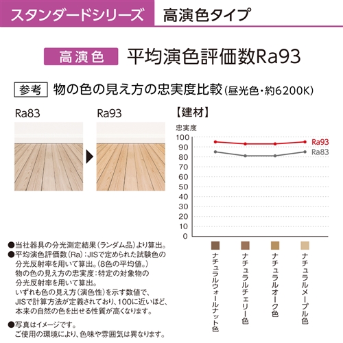 ●高い演色性Ra93で全ての光色が自然光に近い見え方
