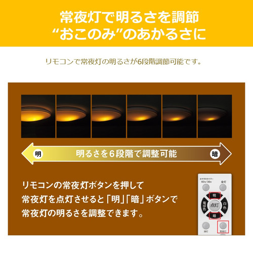 リモコンで常夜灯の明るさが6段階調節可能です。