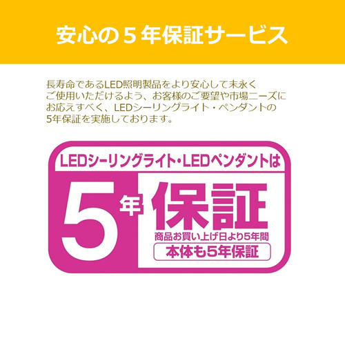 保証期間はお買い上げ日より5年間です(本体・LED器具の点灯装置)。