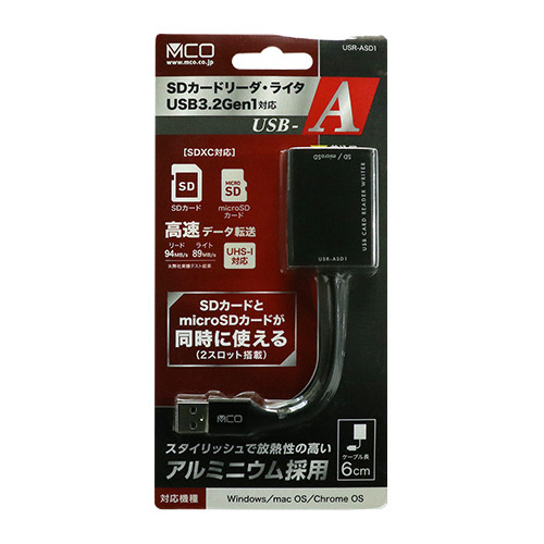 ミヨシ USR-ASD1/BK SD microSDカードリーダ ライタ USB-A ブラック USRASD1/BK
