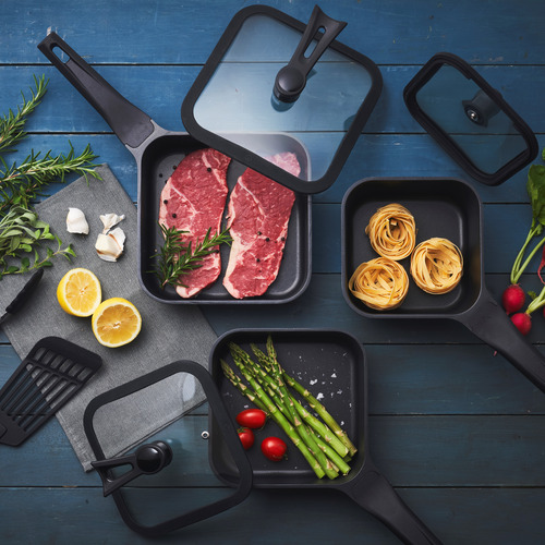 ●フライパンの常識を覆す四角いカタチは、焼き面積も広く一度にたくさん調理ができる