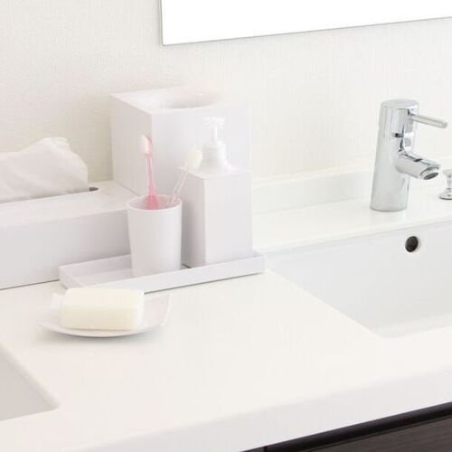 直線と曲線のコンビネーションが生み出すシンプルなフォルムが、いつものパウダールームを高級ホテルのような空間に演出してくれます。