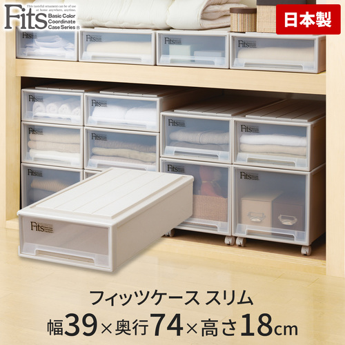 TENMA 天馬 Fits 収納ケース フィッツケース スリム カプチーノ 幅39×奥行74×高さ18cm 押入れタイプ 日本製 衣装ケース 引き出し