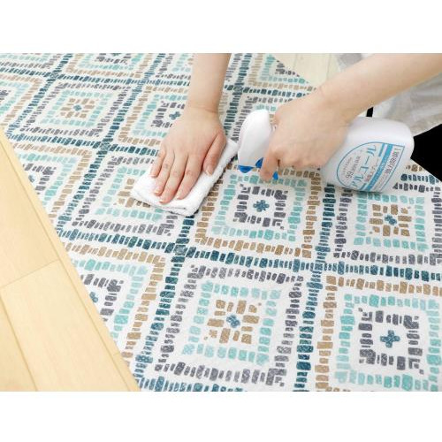 ご自宅の床材や床色によってマットの表情が変わります。塩ビ素材なので、お洗濯が不要で調味料や油汚れも染み込まずサッと拭くだけでキレイ。