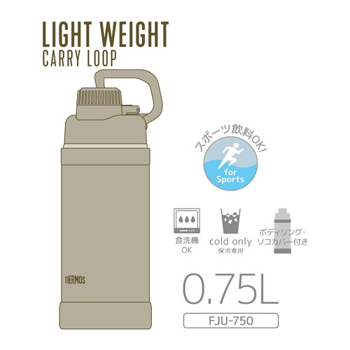 サーモス FJU-750-SND 真空断熱スポーツボトル 持ち運びやすいキャリーループ付き 750ml サンド