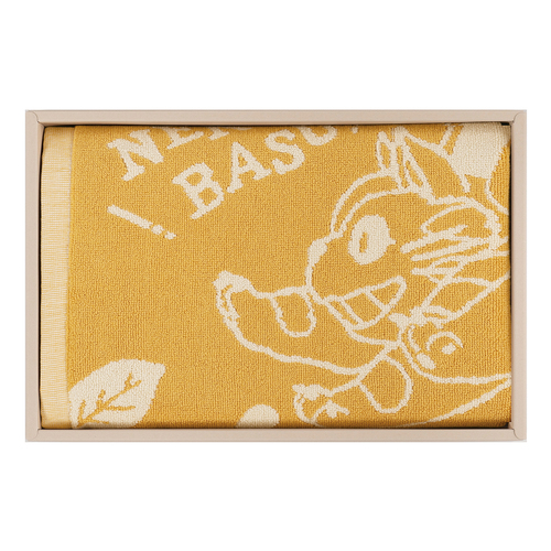 優しいイエローとアイボリー色で描かれたネコバスのタオル地バスマット。ギフトボックス入りなので贈り物にもおすすめです。