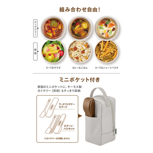 ●スープジャーとおかず容器がセットになったランチセット。断熱構造の専用ポーチ付き