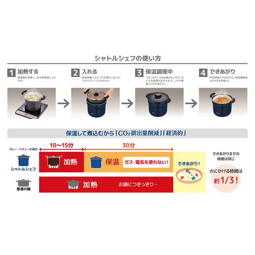 ●火からおろして余熱で煮込むから安全!電気代・ガス代の軽減にも