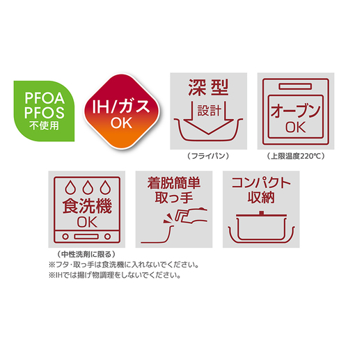●IH・ガス火対応。耐摩耗性デュラブルコート