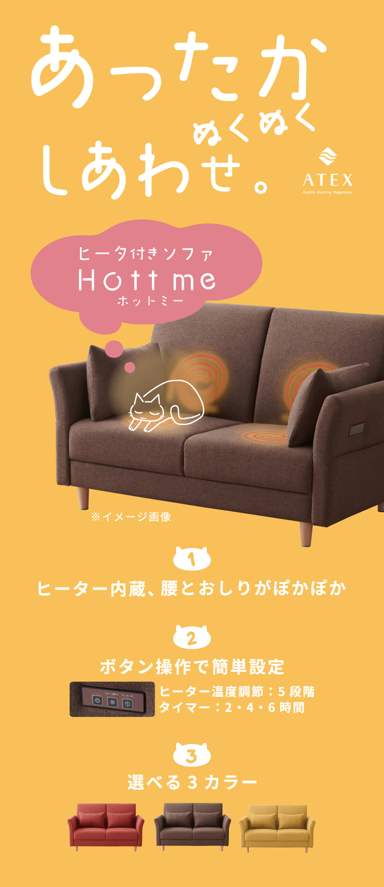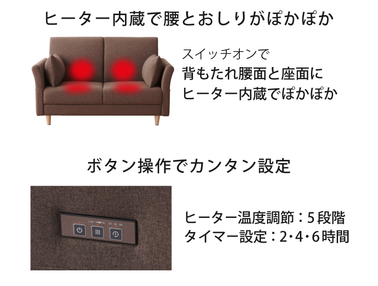 ●座面と背もたれ腰部分にヒーターを内蔵。