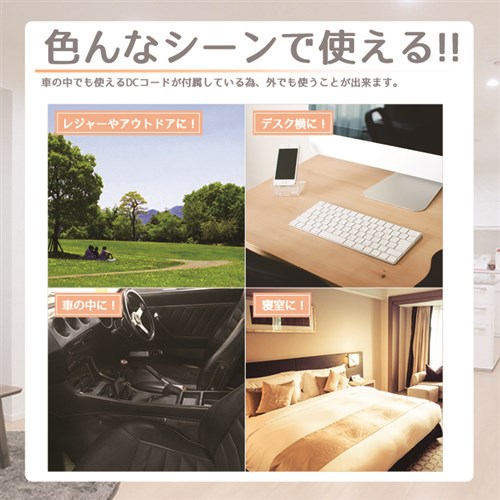 ●アウトドア、レジャー、車内など、外にも持ち出せます。