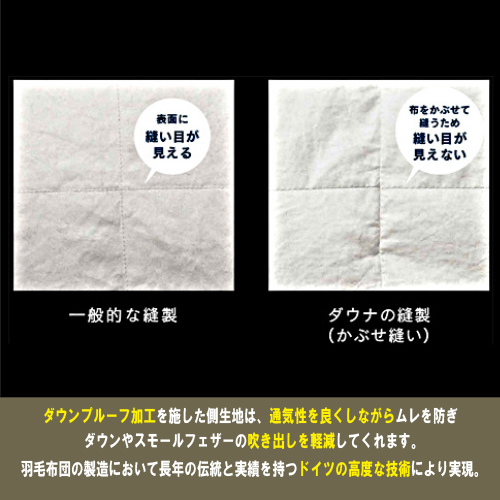 羽毛布団の製造において長年の伝統と実績を持つドイツ。その高度な技術と、本質にこだわる「ものづくり」の精神で作り上げられた、まさに「逸品」の羽毛布団です。