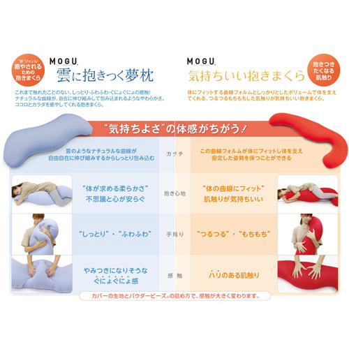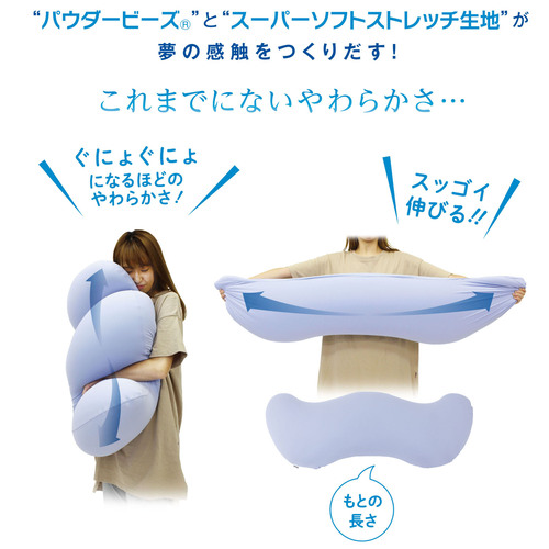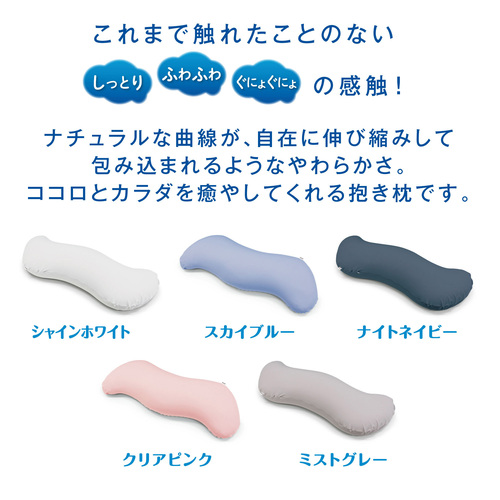 雲に抱きつきたい・・・、そんな夢のような感触。ナチュラルな曲線が自在に伸び縮みして包み込まれるようなやわらかさ。ココロとカラダを癒してくれる夢の抱き枕です。