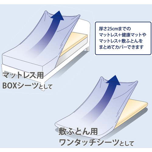 マットレスにはBOXシーツとして、敷ふとんにはワンタッチシーツとしてお使い頂けます
