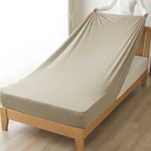 [シングル]小栗 のびのびシーツ カチオン染めニット素材 Merry Night ベージュ PEC19101-96