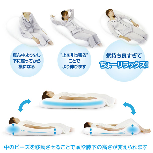 ふわふわの雲の上で眠る、そんな理想が実現するような体感。全身がふわっと浮くように包まれる体感、自然と体の力みが抜けていくリラックス感は、まさに「次世代」の全身リラクゼーション系枕