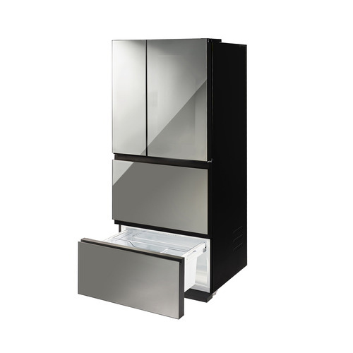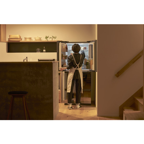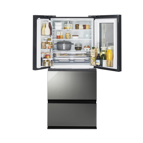 ハーフミラーのウィンドウは、庫内の隅々まで渡せる大きさ。幅が広く、奥行きの浅い設計なので中に入れたものがスムーズに把握できます。