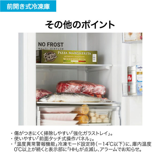 ・「温度異常警報機能」冷凍モード設定時(-14℃以下)に、庫内温度0℃以上が続くと表示部に「HH」が点滅し、アラームでお知らせ。