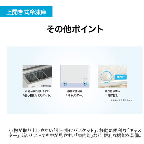 ・移動に便利な「キャスター」。・中が見やすい「庫内灯」。