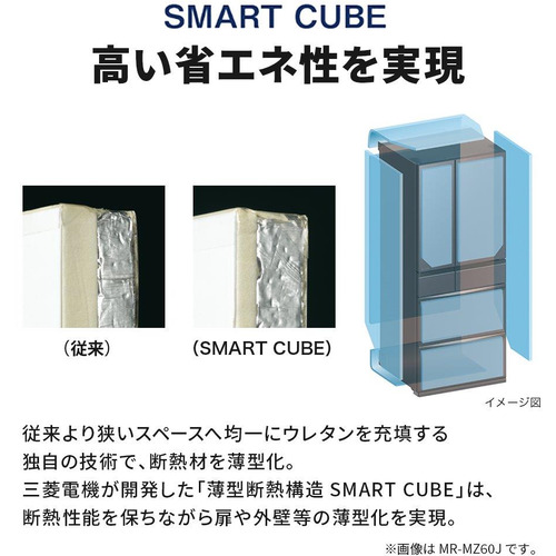 三菱電機 MR-GW52TJ-W 6ドア冷蔵庫 (517L・フレンチドア) クリスタルホワイト MRGW52TJW