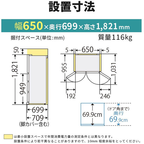 高さ(mm)×幅(mm)×奥行(mm):1821×650×699
