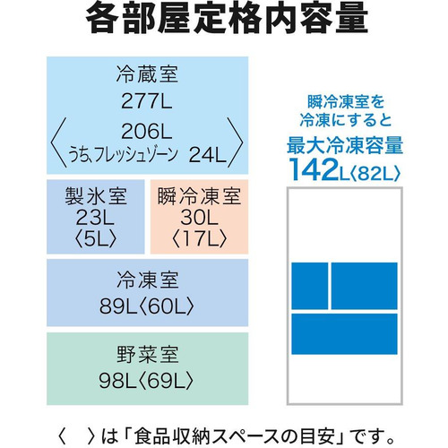 冷蔵室(スライド室):277L(内、スライド室24L)