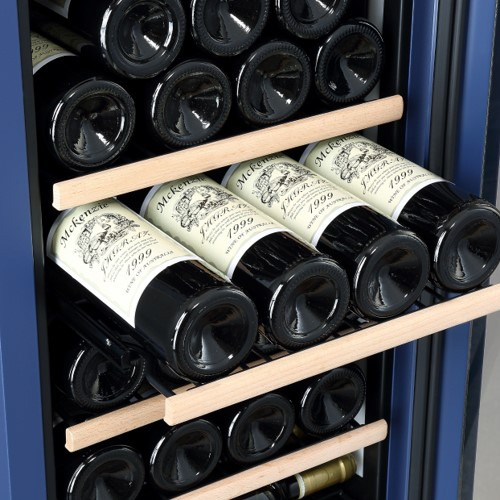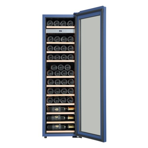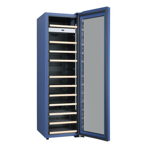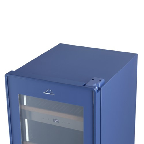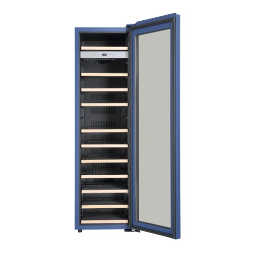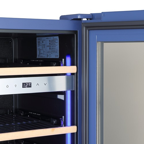ワインセラーでは稀な青のカラーバリエーションタイプ。シックなブルーの塗装を施すことで穏やかで上品な雰囲気に仕上げました。さらに、扉だけではなく本体部分にも青の塗装を施すことで全体の統一感を高めています。設置空間の美しいアクセントとしてもお使いいただける1台です。